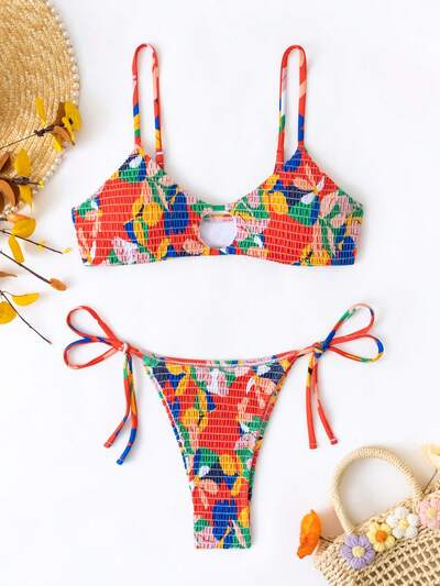 Plant Printed Drawstring Side Bikini Set Carnival Summer-32%