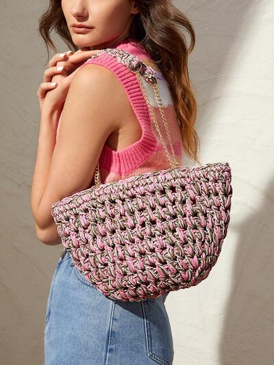 Women's Fashionable Two Tone Woven Tote Handbag
