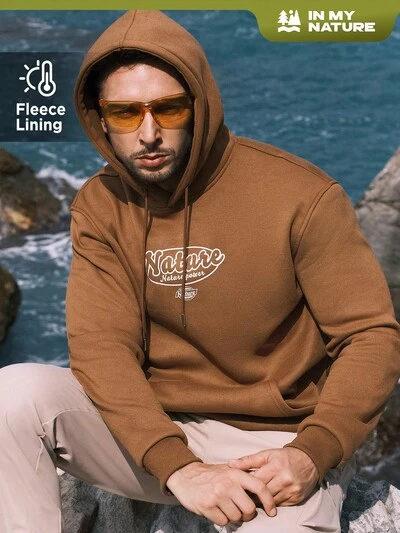 Men Letter Graphic Drawstring Outdoor Hoodie-65%