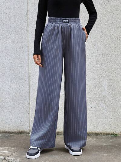 Striped Print Slant Pocket Wide Leg Pants-60%