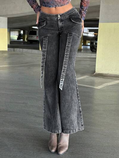 Women Elegant Flared Pocket Pants, Versatile-65%