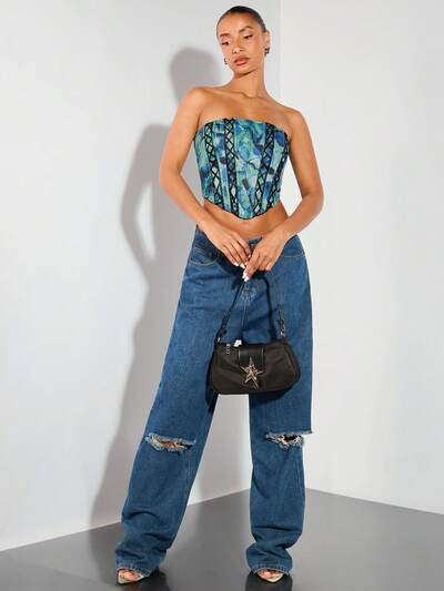 Tube Top Vacation Print Lace-Up Embellishments Victoria Secret Corset Top,Rave Festival,Country Concert Tunic Top,Rave Festival ,Going Out Tops