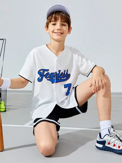 Tween Boys' Loose Fit Sporty Letter Print Casual Short Sleeve Shirt