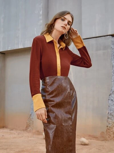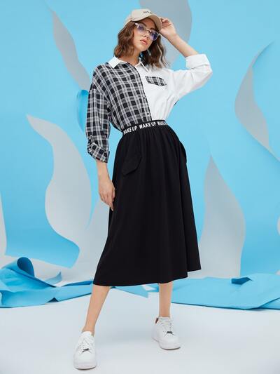 Plaid Panel Drop Shoulder Button Up Shirt-65%