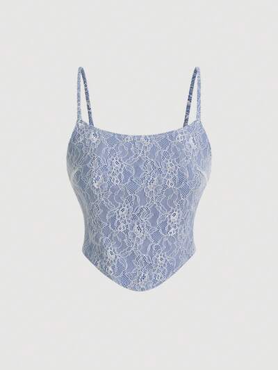 Sexy Romantic Party Club Vacation Music Festival Colored Lace & Ribbed Knit Splicing Slim Fit Camisole Top