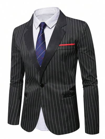 1pc Men's Plus Size Striped Long Sleeve Blazer Jacket-64%