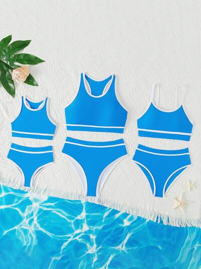 Tween Girl Color Block Bikini Set Beach Set, Mommy And Me Matching Outfits (3 Sets Sold Separately) Summer Beach-44%