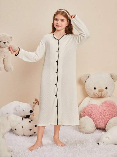 Tween Girls' Loose Cute Color Block Patchwork Wave Hem Homewear-45%