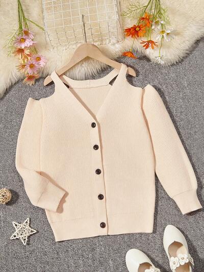 Tween Girl Cold Shoulder Button Front Cardigan-60%