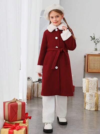 Tween Girl Borg Collar Button Front Overcoat-60%