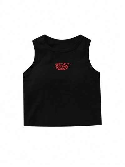 Tween Girl Letter Embroidery Tank Top-60%