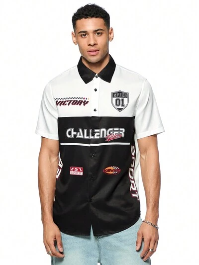 Men's Short Sleeve Shirt With MOTO APPLIQUE Pattern-25%
