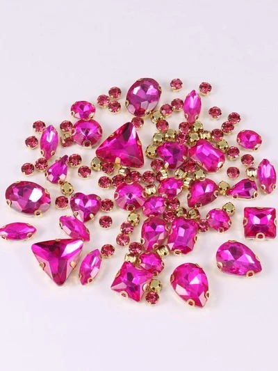 1 Pack Approx. 130pcs Gold Sew On Rhinestone Gems, Mixed Shapes Metal Claw Glass Jewel Sewing Stones, Silver