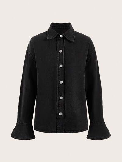 Grommet Lace Up Front Raw Trim Denim Skirt-37%