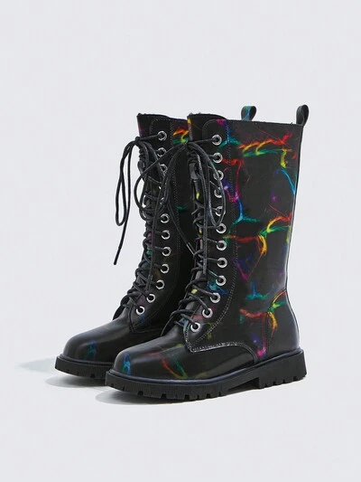 Fashionable And Comfortable Slip-resistant Street Style Boots For Girls, Colorful Flat Long Tube Booties With Ties-60%