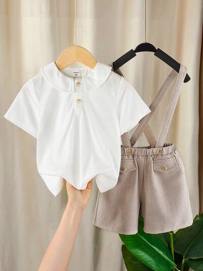 Teen Boy Color-Blocking Striped Workwear Shirt & Shorts Set