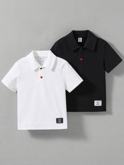 Boys' Polo Shirt With Color Block Buttons And Weave Trim Decoration-46%