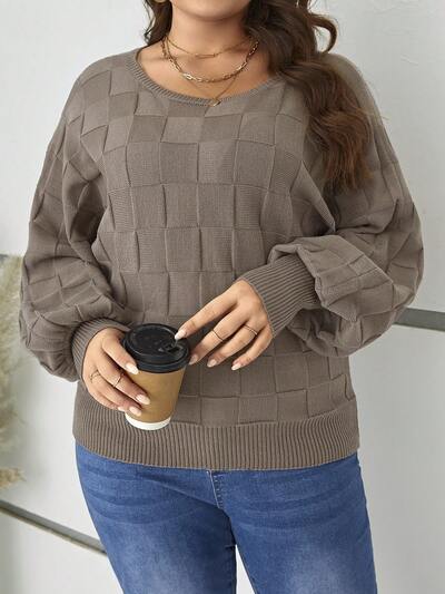 Plus Plaid Pattern Drop Shoulder Sweater-60%