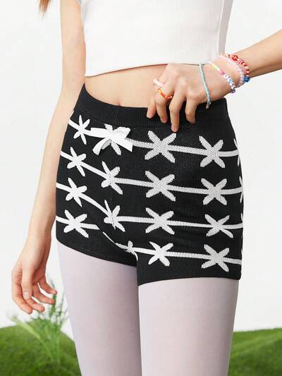 Casual Women's Short Sleeve Sweater And Shorts Set With All Over Print-41%