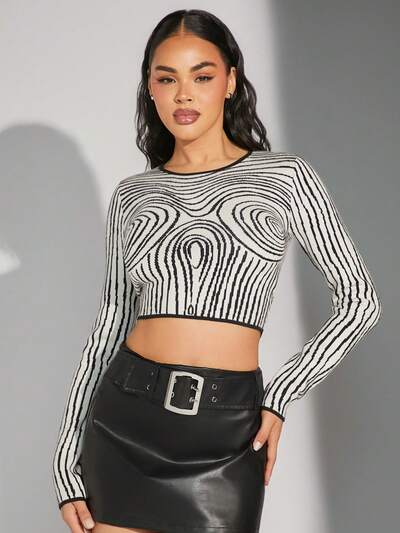 Abstract Body Map Pattern Crop Sweater-35%