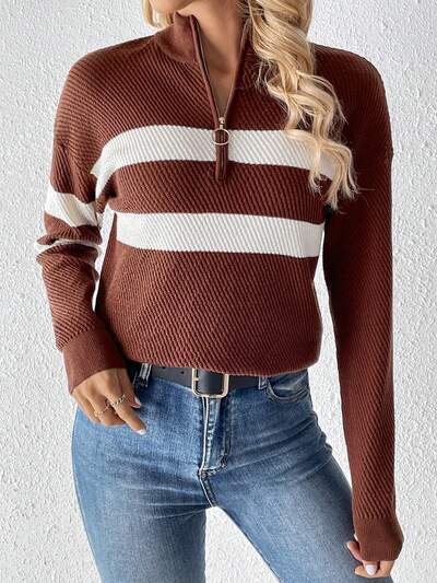Women's Striped Half Placket Long Sleeve Sweater-60%