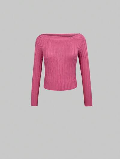 Solid Boat Neck Ribbed Knit Pullover Fall Winter Sweater-60%