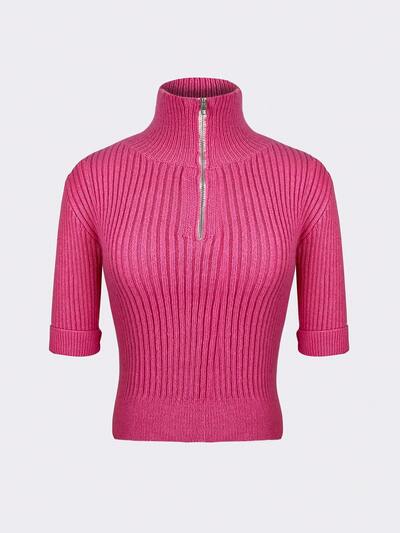 Half Zip Ribbed Knit Top-35%