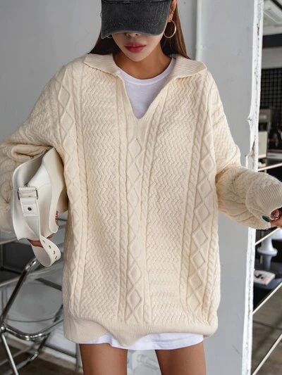 Drop Shoulder Cable Knit Sweater Without Tee,Fall Women Clothes