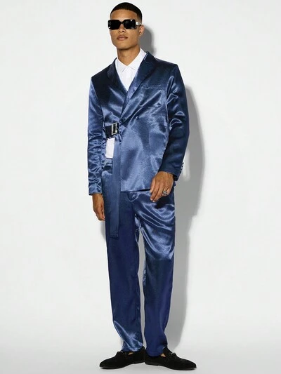Men's Casual Solid Color Suit Set With Coat And Long Pants-26%