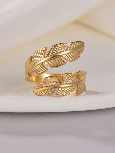 Fashionable Stainless Steel Leaf Design Wrap Ring For Women For Daily Decoration Gold Popular Jewelry Gift Party-2%