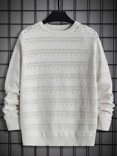 Men Solid Pointelle Knit Sweater, For Fall Winter-60%