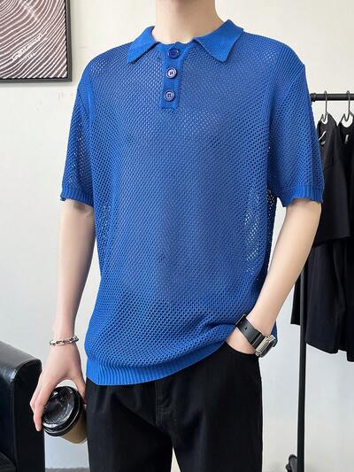Men's Solid Color Short-Sleeve Hollow Out Knit Top