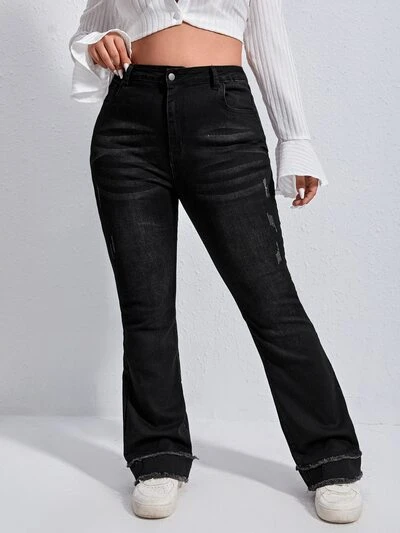 Plus High Waist Raw Cut Flare Leg Jeans-60%