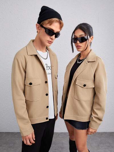 1pc Loose Fit Men's Flap Pocket Raglan Sleeve Overcoat, For Fall Winter-60%
