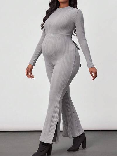 Maternity Knotted Ribbed Jumpsuit With Cutout Back Design-60%