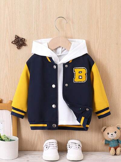 Baby Boy Letter Patched Striped Trim Varsity Jacket Without Hoodie