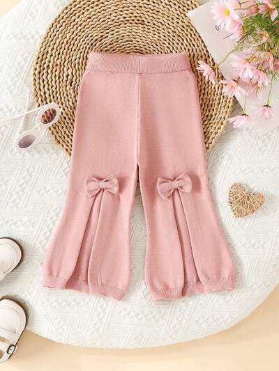 Baby Girl Bow Front Fold Pleated Detail Knit Pants-60%