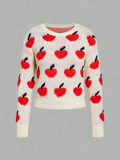 Teen Girl Apple Pattern Drop Shoulder Sweater-60%