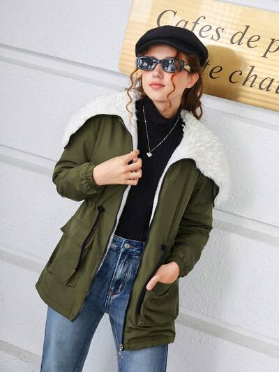 Teen Girls' Casual Outdoor Green Windproof Plush Jacket For Camping And College-65%