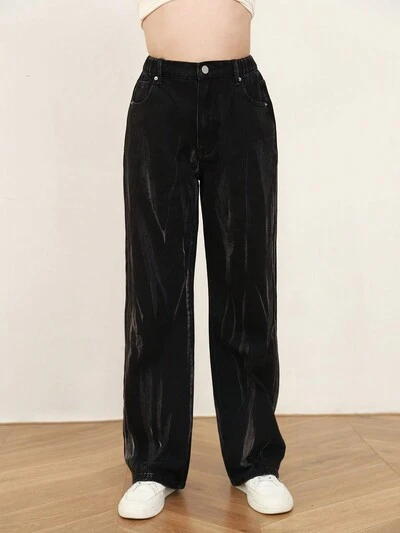 Teen Girls' 3pcs/Set Denim Effect Long Pants-60%