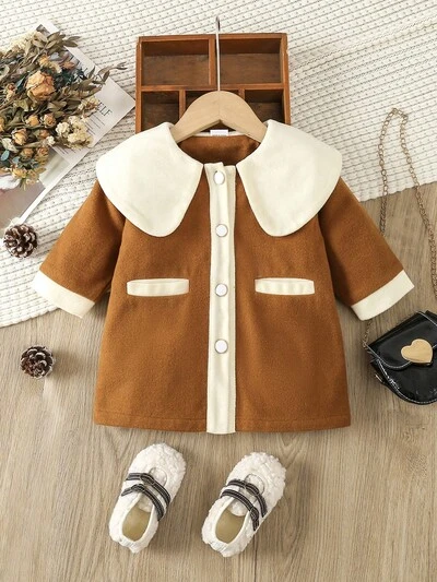 Baby Girls' Gorgeous Woolen Coat With Collar, Autumn And Winter-65%