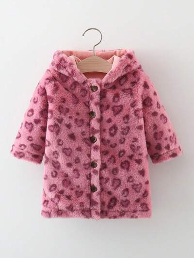 Baby Girls' Solid Colored Thickened Fluffy Warm Coat, Autumn And Winter-60%