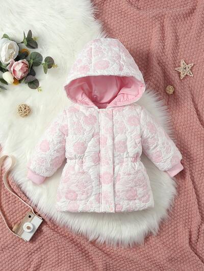 Baby Girl Floral Jacquard Hooded Padded Coat-45%