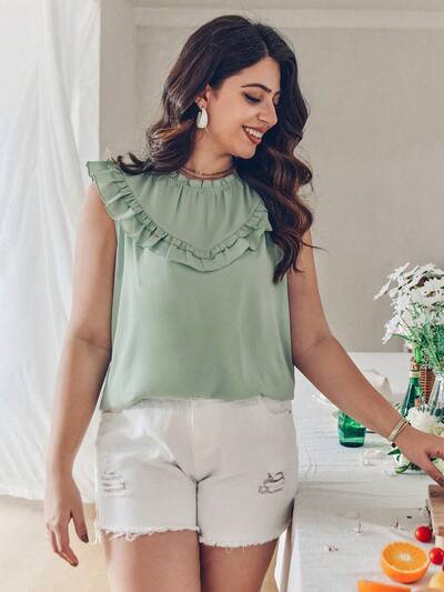 Plus Size Women's Round Neck Blouse With Frill Hem-30%