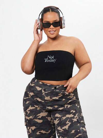 Plus Size Sparkly Square Neck Crop Top With Slim Fit And Patchwork Design-30%