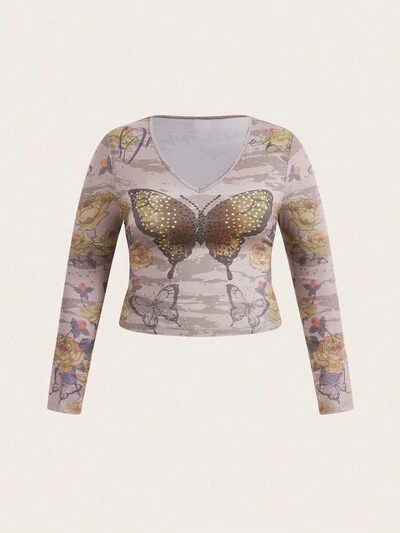 Plus Size Pattern Printed Long Sleeve Shirt-30%