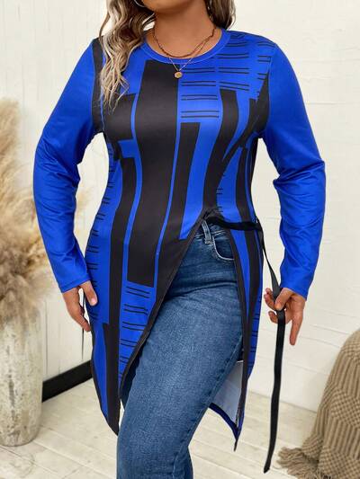 Plus Colorblock Asymmetrical Hem Tee Fall Cloth For Women-60%