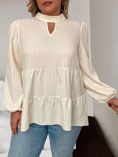 Plus Size Women's Textured Puff Sleeve Shirt-30%
