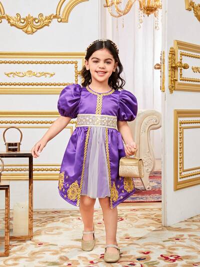 Glitter Embroidered Mesh Puff Princess Dress For Young Girls, Suitable For Birthday Parties, Evening Parties, Performances, Weddings, All Seasons-56%