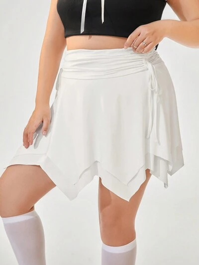 Plus Size Women's Spring Break Balletcore Ballet Style Asymmetrical Hem Pleated White Mini Skirt-27%